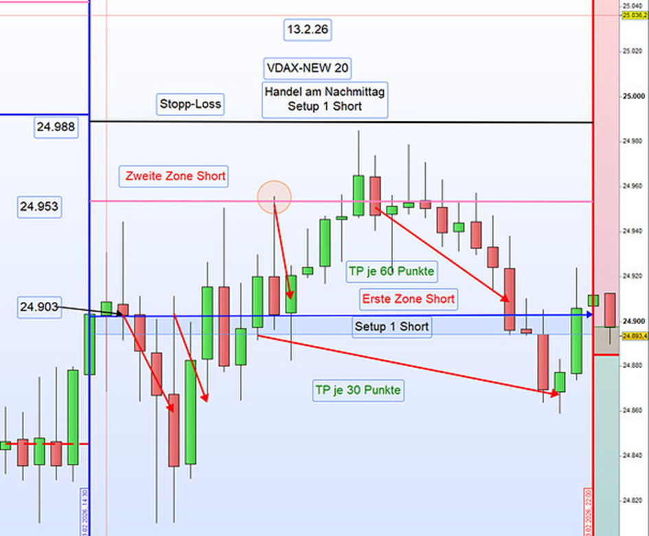 An der ersten Short-Zone konnte regelbasiert eine Short-Position eröffnet und mit Gewinn geschlossen werden.